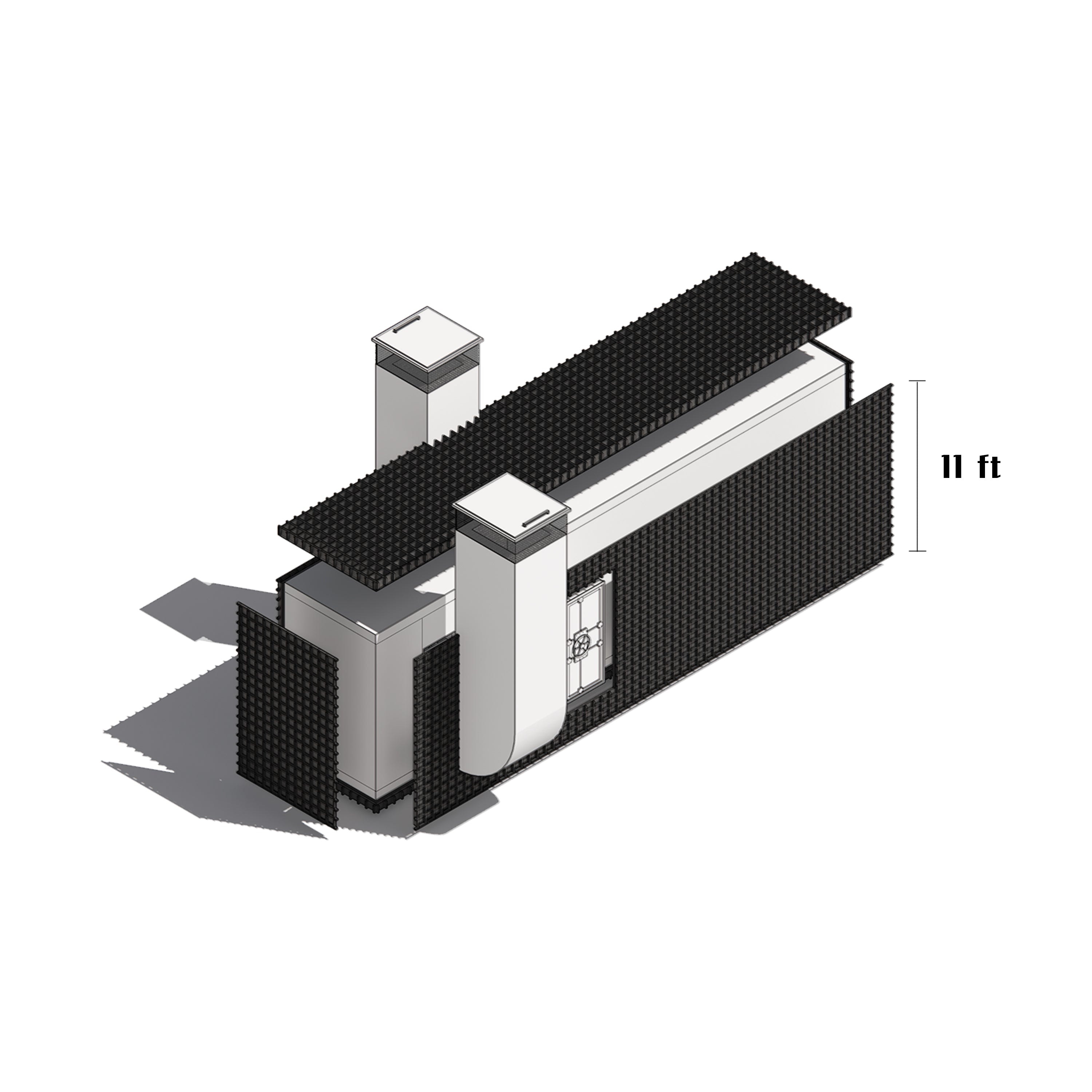 Standard safe rooms or bunkers do not include lead plates. Customers can also choose to add enhanced radiation protection, namely a 2-inch-thick lead plate, for an additional cost of $20 per sq.ft (surface area).
